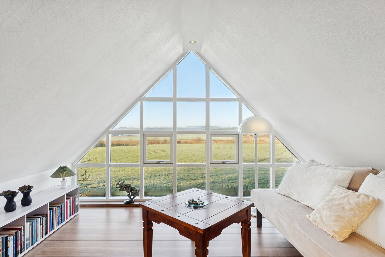 Indenfor finder du masser af plads til den store familie. Her har du blandt andet et stort køkken alrum med et moderne køkken. I forlængelse heraf har du en stor tv-stue. Fælles for disse rum er, at der er godt lysindfald, og fra køkkenet har du udgang til en skøn terrasse. På stueplan finder du også et soveværelse, badeværelse og bryggers. På førstesalen er der et stort multirum, hvor der er mulighed for at etablere flere værelser. Herfra har du et skønt kig over naturen. Derudover rummer førstesalen to værelser og husets andet badeværelse.
