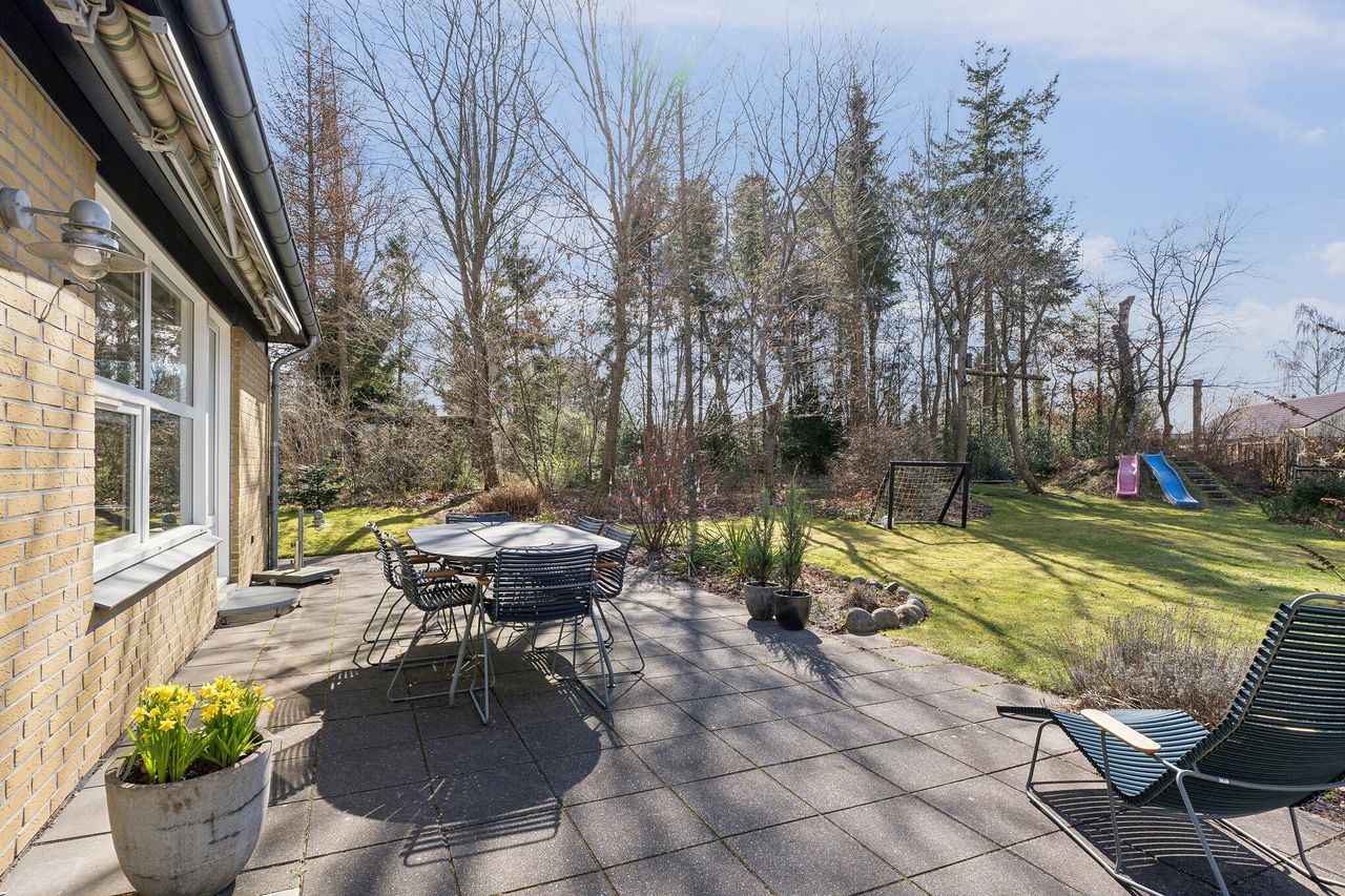 Udenfor venter der en super god og børnevenlig have, som ligger op til leg og aktiviteter. Derudover er der også et godt terrassemiljø. Yderligere finder du også god plads til opbevaring i garagen samt et skur. Lige uden for ejendommen er der en skøn legeplads, hvor der ligeledes er super god mulighed for masser af leg.