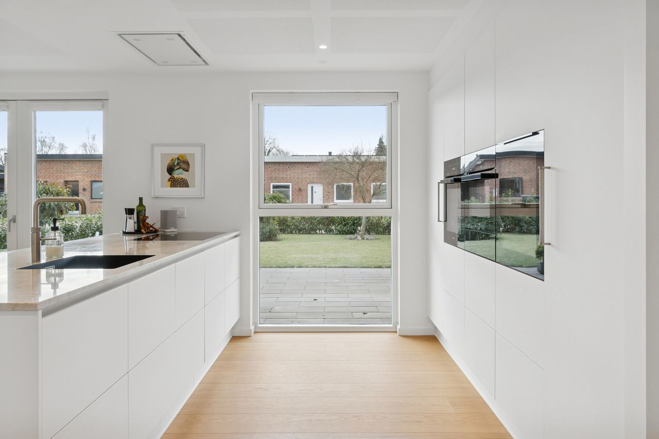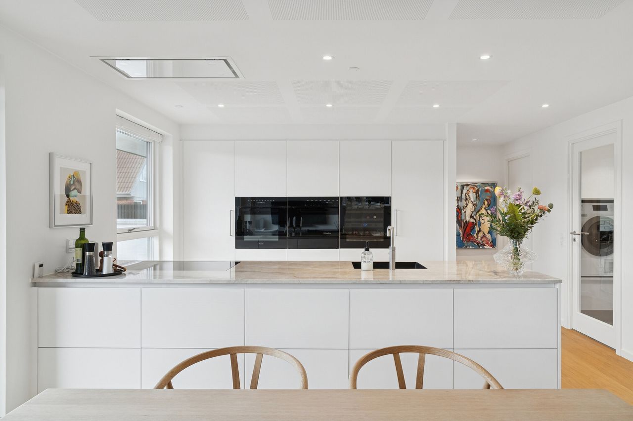 Så snart du træder indenfor, vil du opleve en moderne og stilren bolig, hvor praktikken samtidig er gennemtænkt. I hjerterummet finder du et stilrent Svanekøkken af kvalitet fra øverste hylde, med alt hvad du har brug for i hvidevarer. Derudover en god køkkenhalvø med bordplade i natursten. I forlængelse af køkkenet er der god plads til spiseafdeling og stue. Fællesnævneren er her, at der er super lysindfald fra de store vinduespartier samt udgang til terrassen. Yderligere byder boligen på tre gode værelser, som alle rummer god skabsplads, et skønt badeværelse, bryggers og entré.