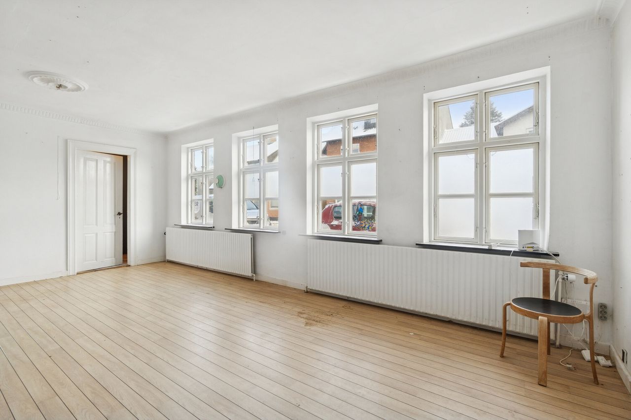 Som ejendommen er i dag finder du indenfor i stueplan et stort alrum med stue i forlængelse, soveværelse, toilet og køkken. Derudover har du fra køkkenet og værelset udgang til en terrasse, hvor en del af den er overdækket. På førstesalen finder du tre værelser, et godt multirum samt repos. Yderligere byder ejendommen også på et mulighedsrigt anneks.